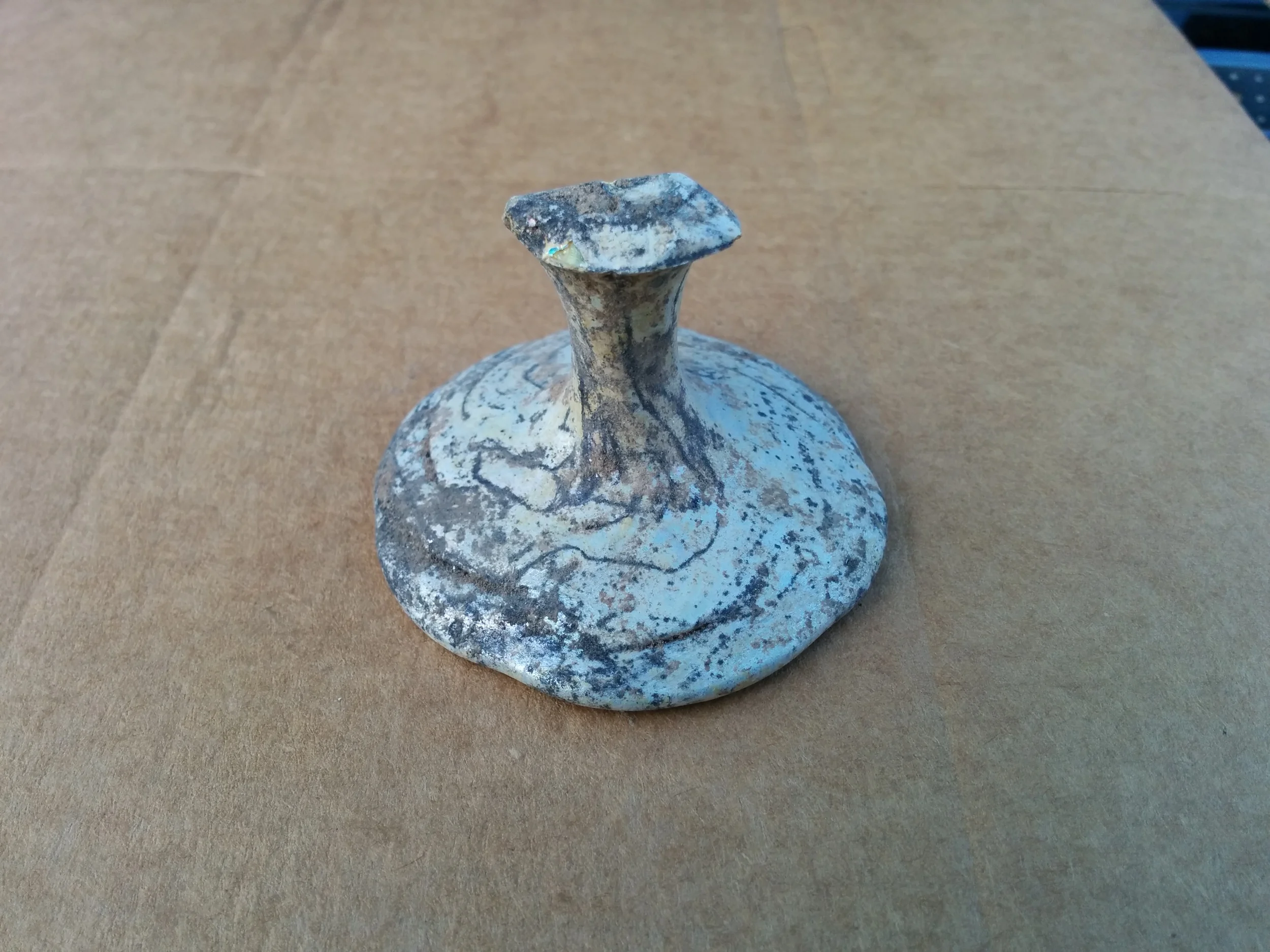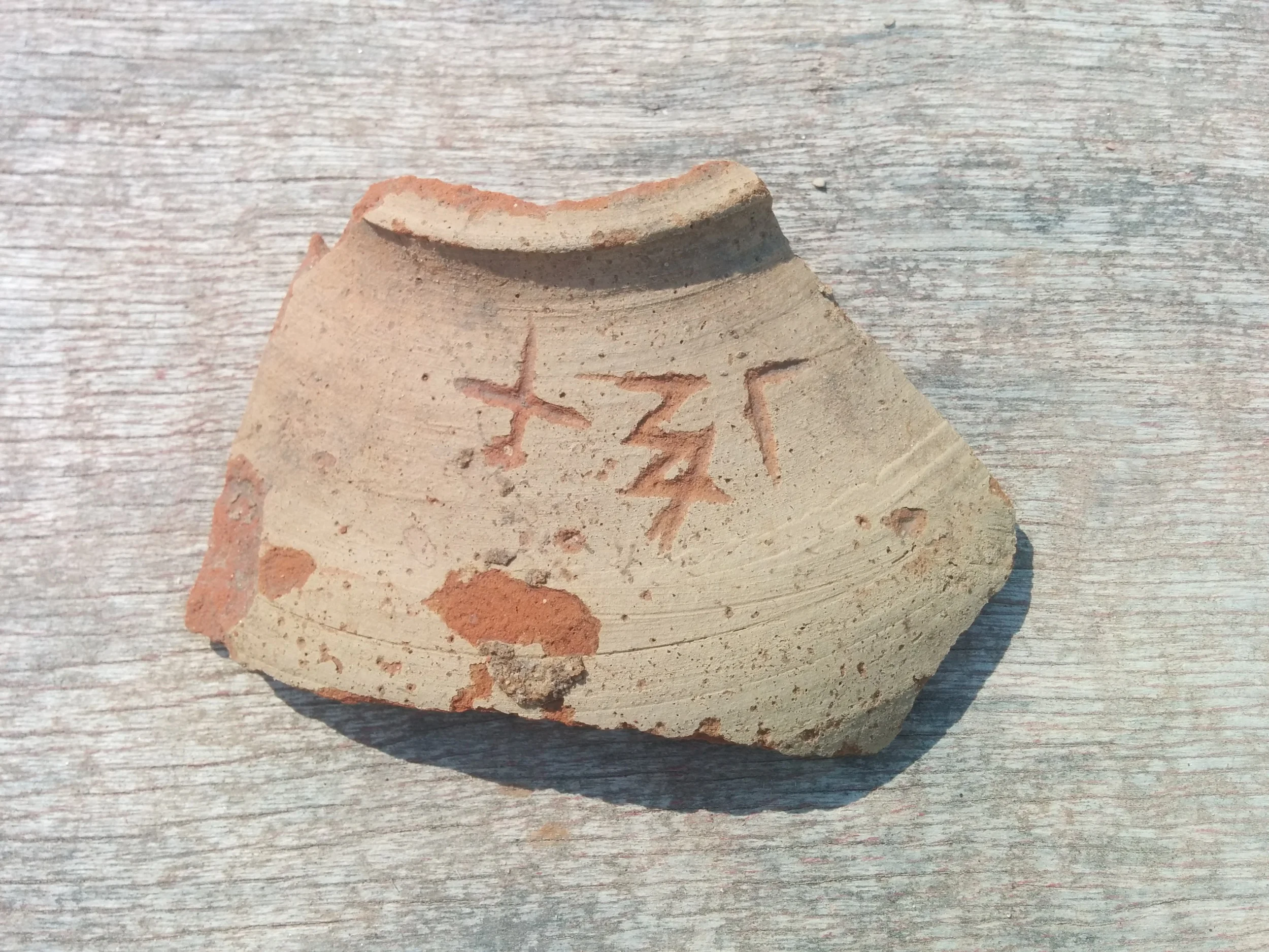 They had a number of interesting small finds this week including a glass base, likely from the Roman or Byzantine period, and a jar fragment incised with three letters.