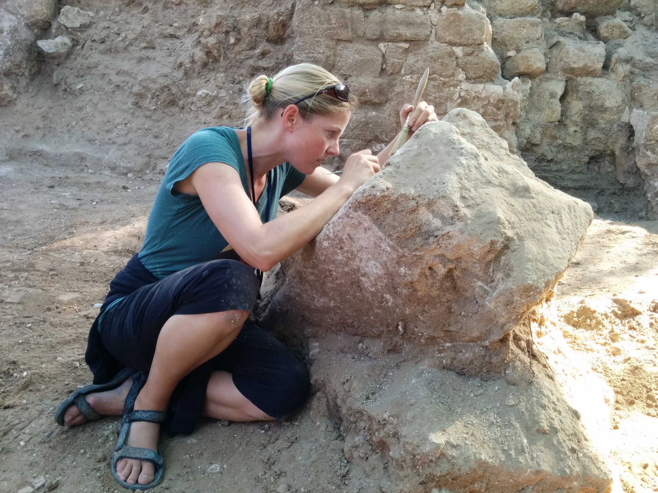 It's not all heavy work all the time, however. Kate pulled a double cleaning some of the painted plaster on one of the wall fragments.