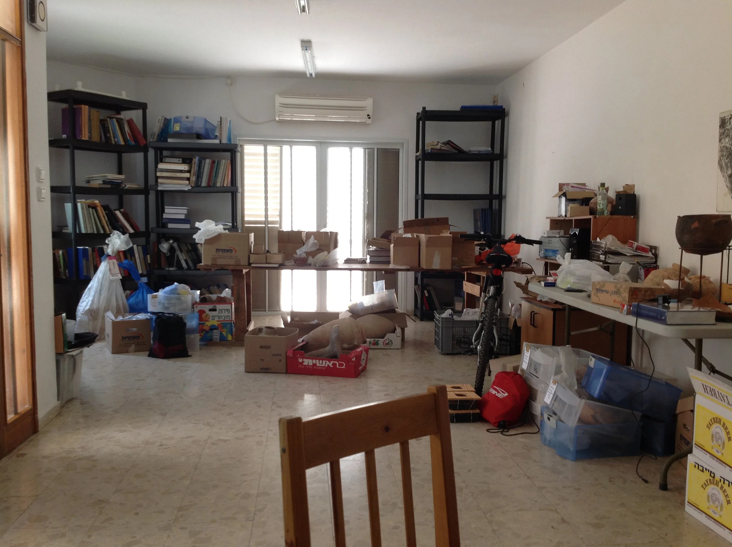After more then 15 years we are saying goodbye to our longtime lab (the "Mabada"). Here you can see the first floor looking a little empty. The boxes are filled with pottery sherds/vessels waiting to be checked against the hundreds of drawings that were done over the winter. Still a lot of work to do before we close the Lab for good at the end of the season.