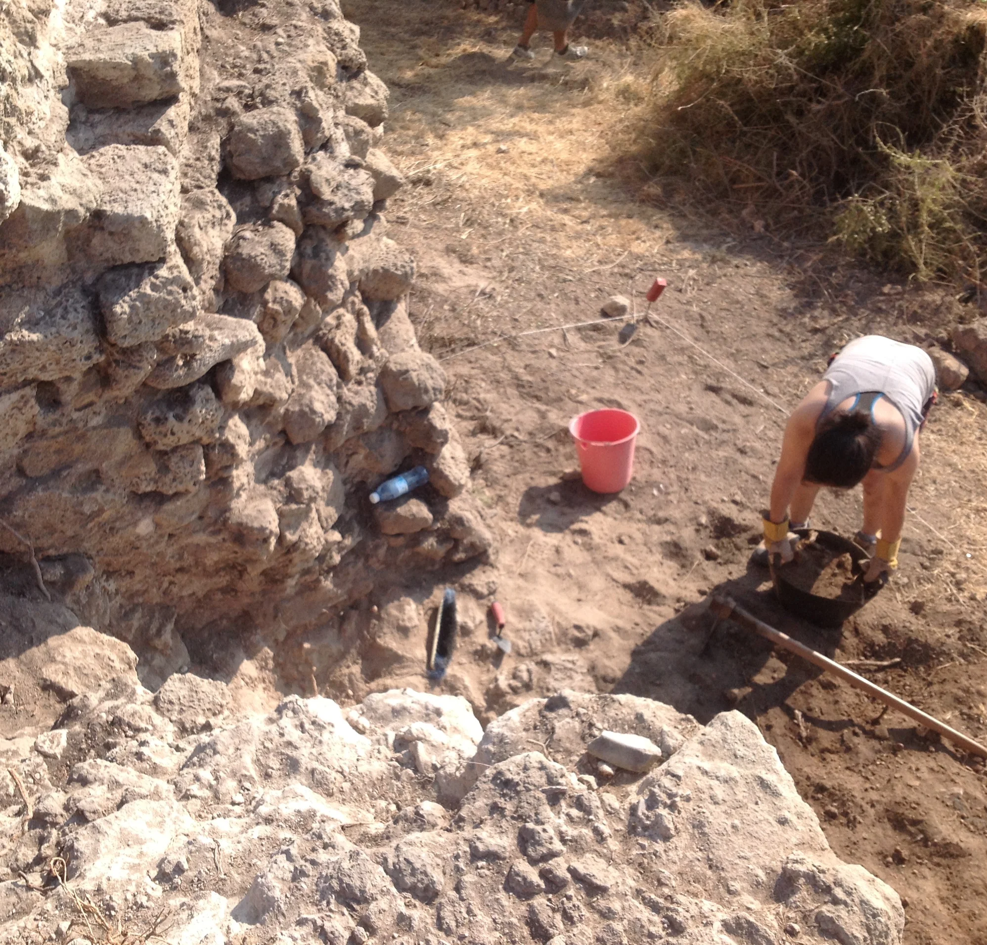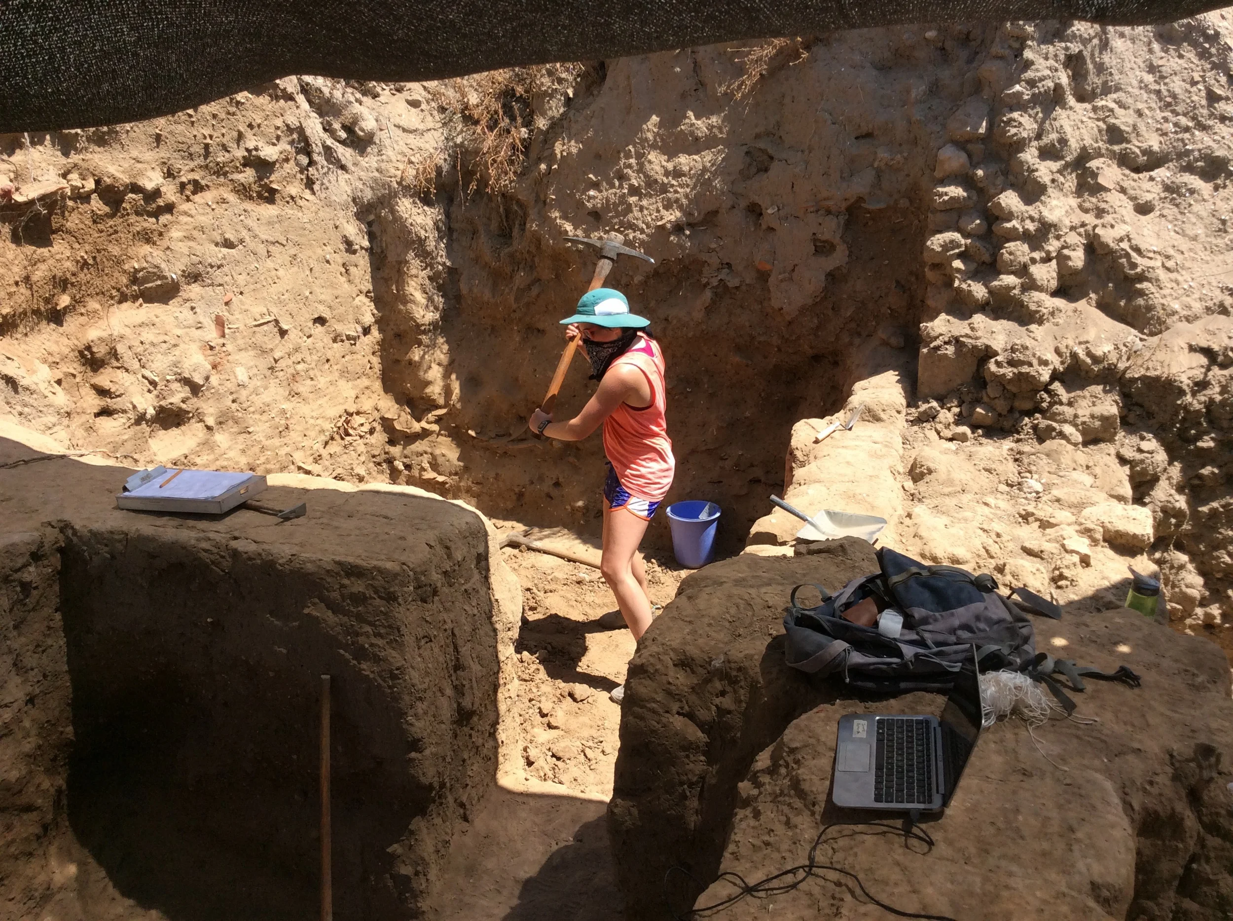 The wall removal in Grid 51 has already started. Below, Mackenzie works on removing a Phase 6 (Persian) mudbrick wall.