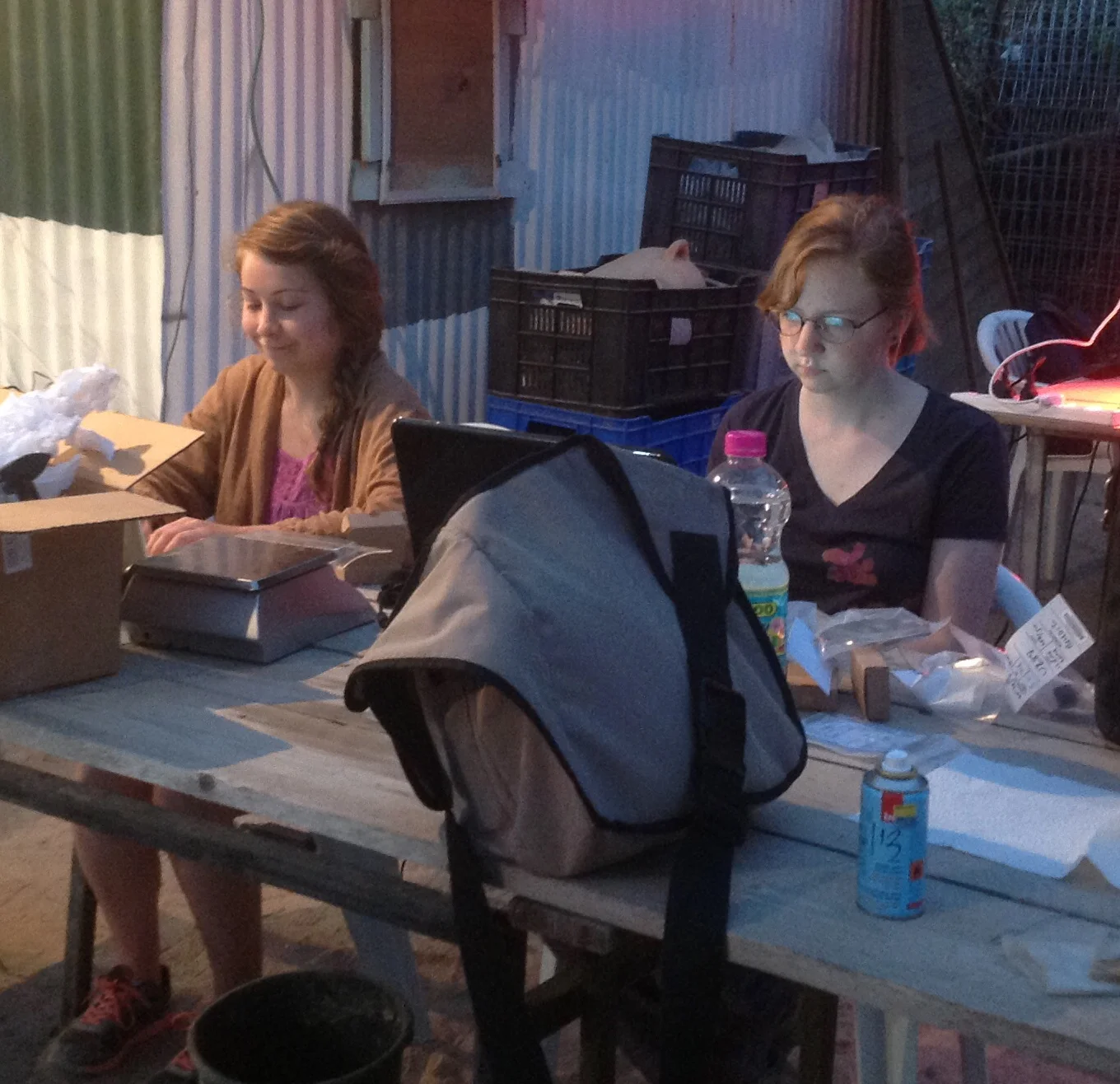 Volunteers and staff in the field aren't the only ones at work during the dig week. The pottery compound is actually quite busy during the day. The registrars run things making sure everyone has the supplies they need, welcoming expected visitors, and processing all the objects that we find during the dig day.