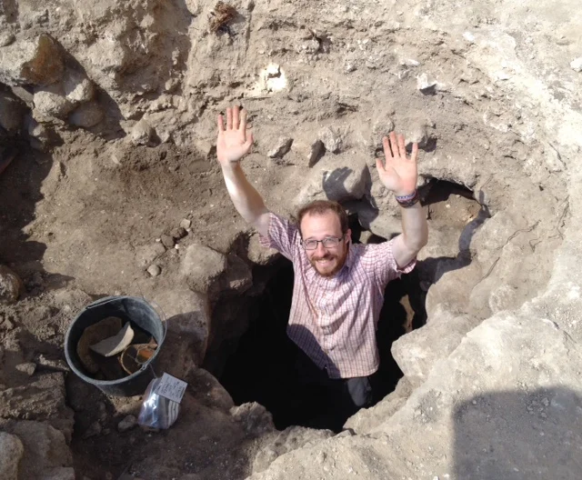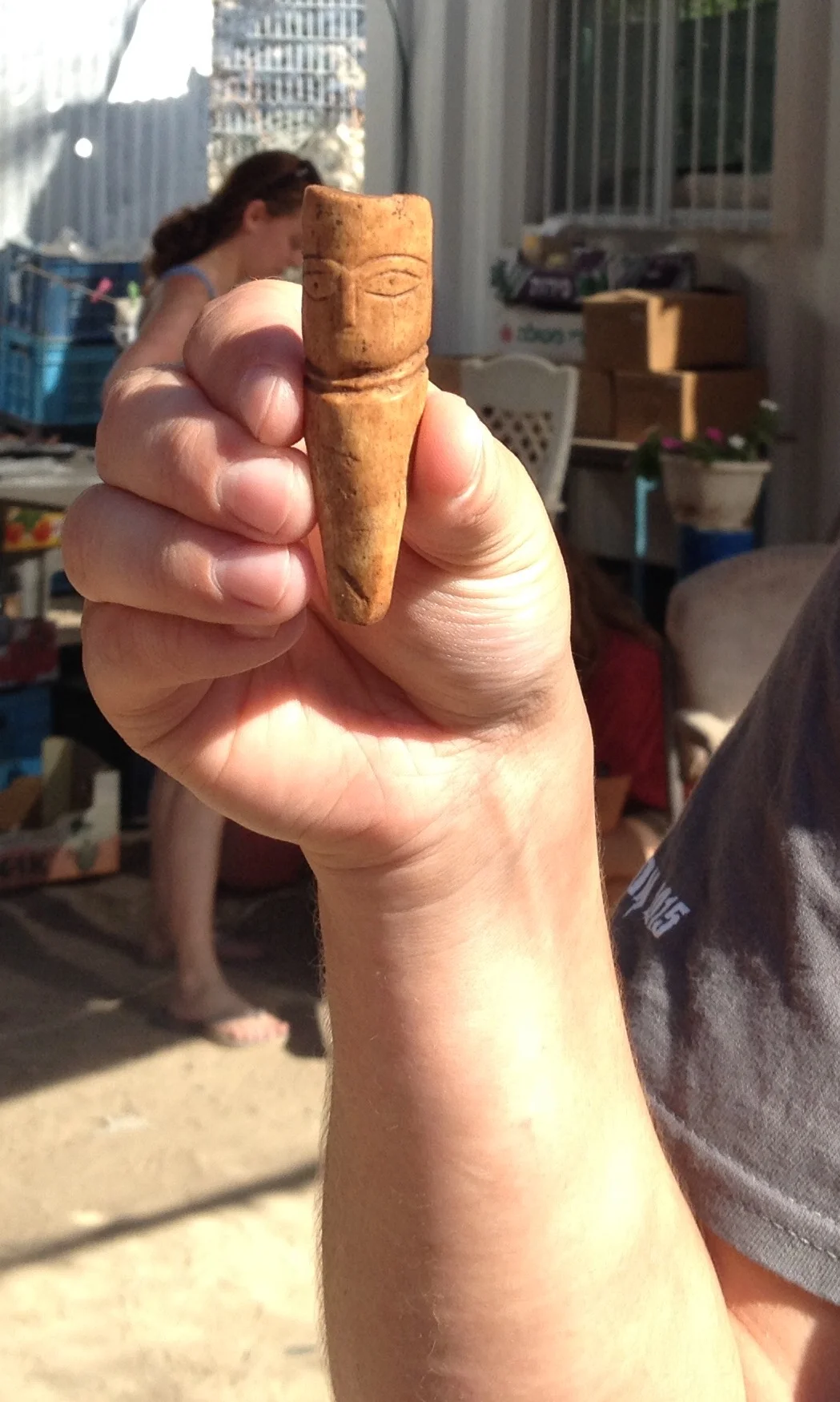 It's a wonderful example of worked bone, in this case a doll, collected from a deep sewer shaft discovered in Grid 47. How much fun are sewers? Fun enough that Ben Felker hopped in to do a little digging (as did a number of other visitors to the grid).