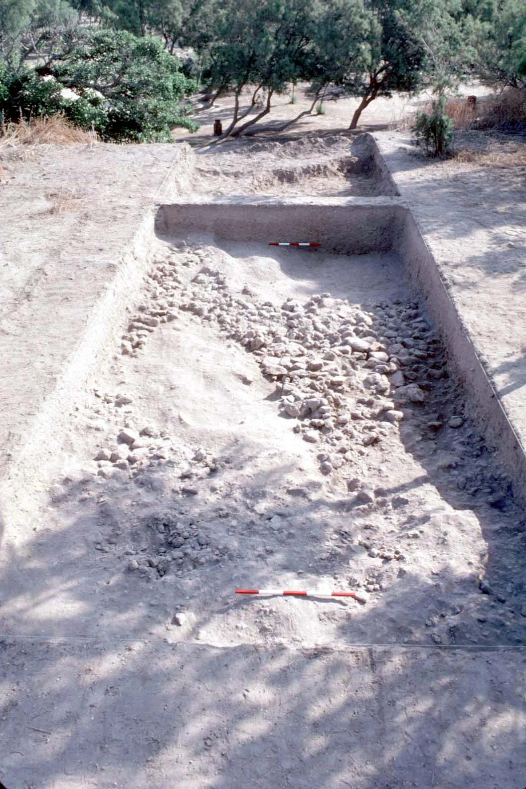 Grid 22 was opened on the edge of the southern end of the North Tell after EB sherds were found in the vicinity. Though excavation did not produce Bronze Age material, it did reveal the remnants of a Byzantine period building and sewer system.