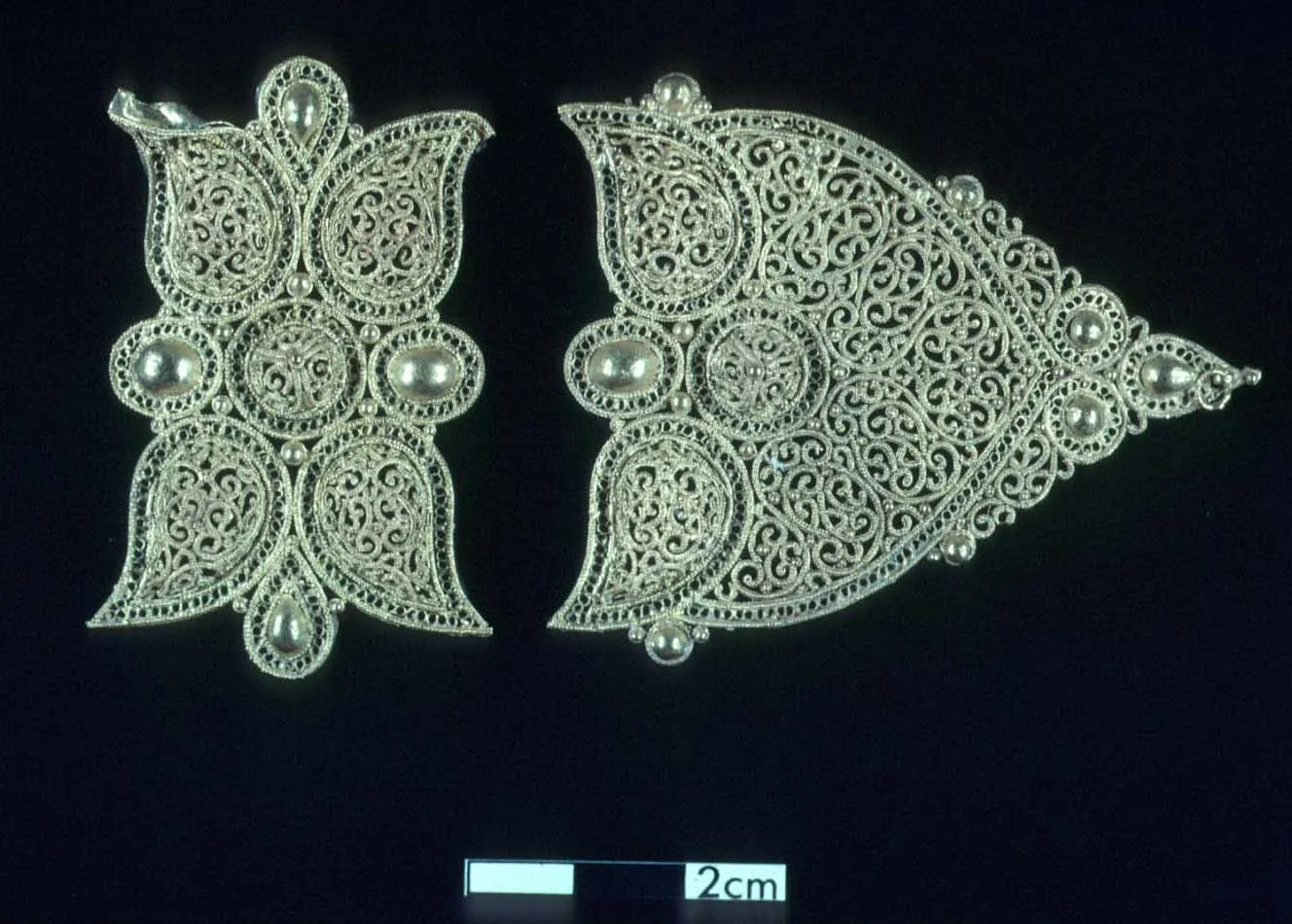 Published by Miriam Rosen-Avalon in 1991, these two pieces, along with another two found during excavation in 1987, were very fine examples of filigree work.